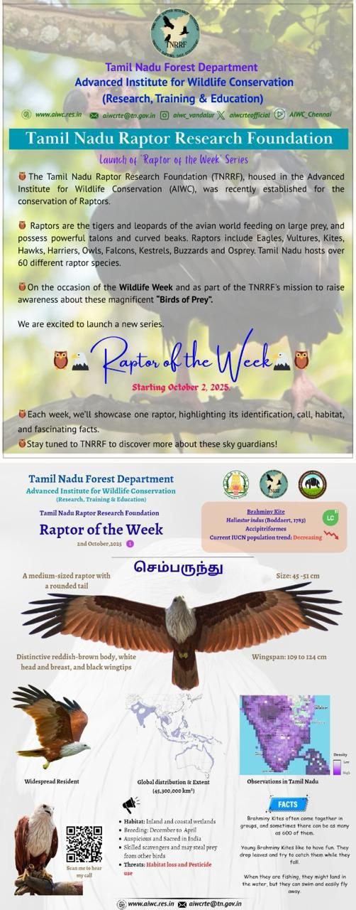 Established in October 2017, Advanced Institute for Wildlife Conservation (AIWC) is one of its kind research institution set up by the forest department of Tamil Nadu primarily to provide scientific solutions to conservation problems. The institute conducts multidisciplinary wildlife research, capacity building in wildlife conservation, training programs and advisories in wildlife research by partnering with leading research institutions in India. The AIWC conducts captive wildlife research in close coordination with Arignar Anna Zoological Park and other zoological parks of Tamil Nadu. The Institute is actively engaged in research across the length and breadth of Tamil Nadu on biodiversity related issues.